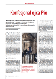 - „Konfesjonał ojca Pio” – Szacuje się, że o. Pio wyspowiadał ok. 5 mln osób. U kratek jego konfesjonału dokonywały się niezwykłe nawrócenia.
